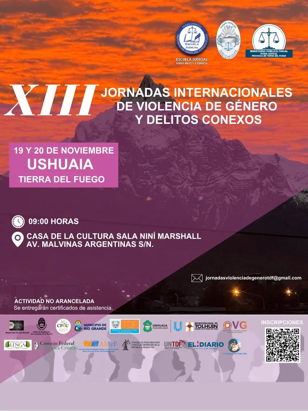 La ciudad de Ushuaia fue sede de las XIII Jornadas Internacionales de Violencia de Género y Delitos Conexos, que se llevaron a cabo los días 19